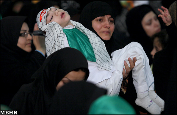 این نوچهایه رژیم همه چی‌ رو به مسخره گرفتن، حیف این بچهای معصوم که بازیچهٔ یه مشت زن دیوانه شدن! طفلکا چه گریایی هم میکنن، اگر امام حسین (ع) الان زنده بود اول گردن اینها رو میزد.