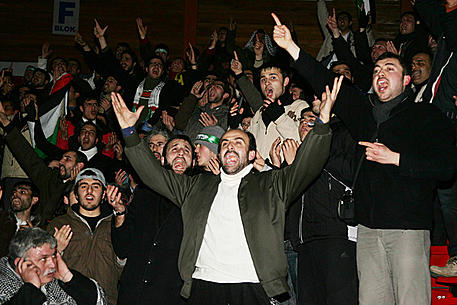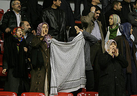 شعار ضد اسرائیلی تماشاگران مسابقه بسکتبال تیم ترکیه ایی و اسرائیلی