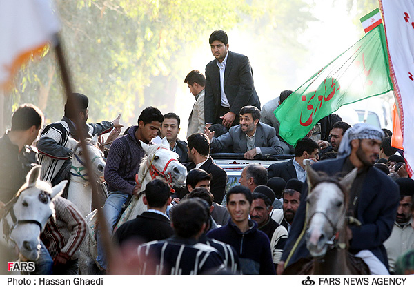 احمدی نژاد : نامردا , نزاشتین یه اسب سواری درست و حسابی بکنم .خدا حافظ , خداحافظ اسب ابلق سم طلا