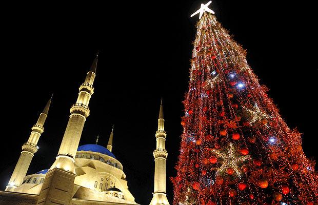 درخت تزئین شده کریسمس در کنار مسجد بزرگ استانبول