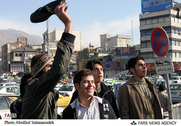 مسابقه پرتاب لنگه کفش در میدان تجریش تهران