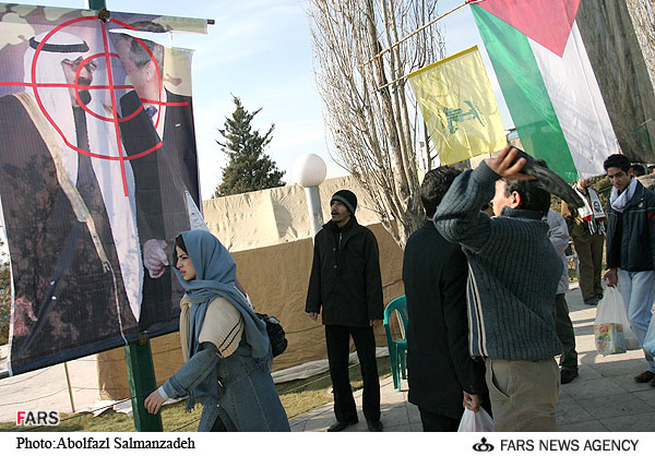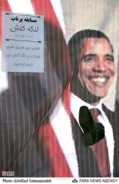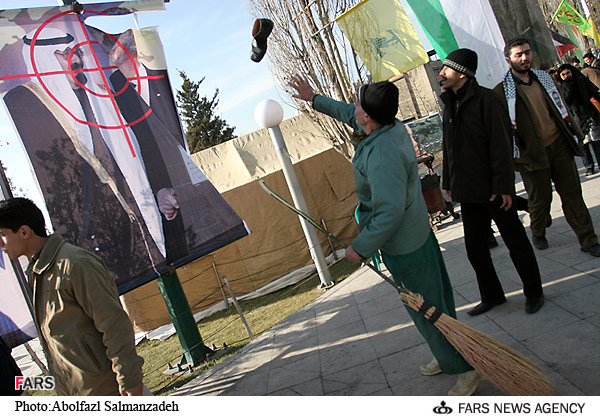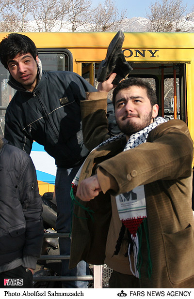 آفرین به این سیاست روشن و شفاف جمهوری اسلامی !!!! این آقایان دورویی و دغل بازی را به حدی رسانده اند که دیگر خودشان هم از پس خودشان برنمی آیند. احمدی نژاد از یک طرف دست به دامان پادشاه عربستان می شود تا مگر بر ضد اسراییل پیامی دهد و از این طریق در بلاهت و حماقت با او شریک شود، آنگاه به عکس پادشاه عربستان لنگه کفش پرتاب می کنند. امت گو..ند هم که به فضل الهی همیشه در صحنه حضور دارند. |