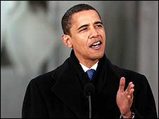 در آستانه ورود باراک اوباما به کاخ سفید، او در کنسرتی در واشنگتن پایتخت آمریکا سخنرانی کرده است.