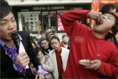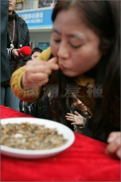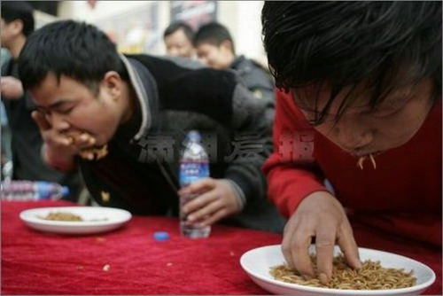 این چینی ها حتی به کرم هم رحم نمی کنند تصاویری که در زیر مشاهده می کنید از یک مسابقه کرم خوری در چین می باشد که هر کسی بتواند زودتر یک بشقاب کرم را بخورد برنده مسابقه می باشد.