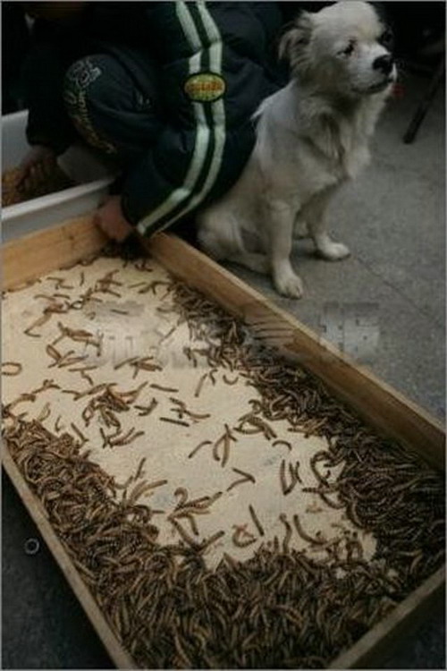 به عکس 4 نگاه کنید. سگ به کرمها نگاه هم نمیکنه ولی تو عکس 5 بچه چینیه آب از دهنش راه افتاده...چندش آوره ا |