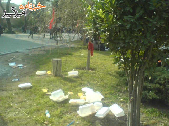 آشغالاشون همه جا ریخته بودن به جز سطل زباله ....خوب اینم از خاصیت های فرهنک سازی اسلامی هست دیگه ...آشغالا مهم نیست کجا باشن مهم اینکه شما قرآن رو بخونید اونم به عربی نه به فارسی ثوابش بیشتر است(و نفهمید چه ....... شعر هایی توشه )