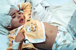 در حالی که پرونده قضایی مربوط به شکنجه دختر 11ساله گلستانی همچنان در جریان است، دختری دیگر قربانی یک کودک آزاری شد؛ دختر 5/3ساله به نام ژینا که اکنون در بیمارستان بعثت سنندج بستری است. گریه های بی امان «ژینا» در بخش آی سی یو بیمارستان بعثت تمامی ندارد و با دیدن هر آدم غریبه یی خود را پنهان می کند، گویی تصویر شکنجه های زجرآور دوباره در وی زنده می شود. بدن چروکیده و لاغر ژینا و باندهای دور سرش بیش از هر صحنه دیگری در بخش آی سی یو که مملو از کودکانی است که هر کدام به دلیلی به تخت بیمارستان پناه آورده اند، به چشم می آید.