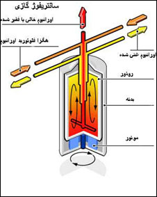 هنگامی که گاز هگزا فلوئورید اورانیوم به داخل این سیلندر دمیده شود نیروی گریز از مرکز ناشی از چرخش آن باعث می شود که مولکولهای سبکتری که حاوی اورانیوم ۲۳۵ است در مرکز سیلندر متمرکز شوند و مولکولهای سنگین تری که حاوی اورانیوم ۲۳۸ هستند در پایین سیلندر انباشته شوند.
