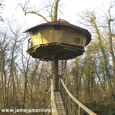 هتل آشیانه پرندگان در پارک ملی لابل در منطقه ماین فرانسه برای افرادی که دوست دارند شبی را مانند پرندگان بر فراز درختان بگذرانند.