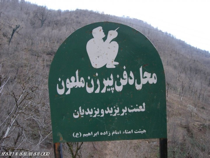 تقریباً در چند کیلومتری باقی مانده به مقبره مطهّر، اتاقکی سیمانی در سمت چپ جاده - درست در کنار پرتگاه – قرار دارد که با خطی درشت بر روی آن نوشته اند: جایگاه پیرزن ملعون!