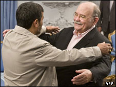 رئیس دوره ای مجمع عمومی به انتقاد مقامات و رسانه های گروهی آمریکا از رئیس جمهوری ایران اشاره کرد و گفت "تصور نمی کنم کسی تردیدی داشته باشد که در این بخش از جهان، از احمدی نژاد تصویری شیطانی ساخته و ارائه شده است."