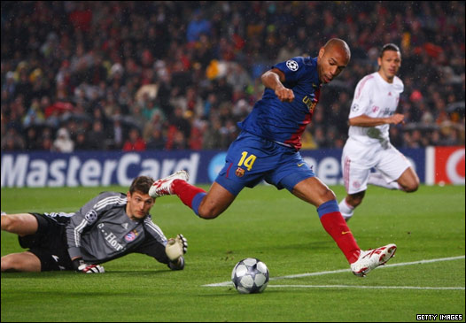 در دیدار پر گل دیگری، بارسلونا میربان، بایرن مونیخ بود. میزبان در همان نیمه نخست با زدن چهار گل کار را یکسره کرد. گل چهارم بارسلونا را آنری به ثمر رساند.