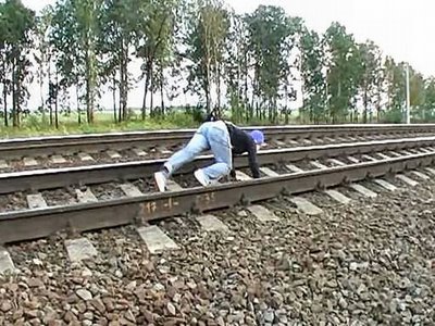 جالب بود وشجاعانه تو ایران هم از این شرط بندیها می کنند حالا مدلش فرق میکنه حتما میدونسته این خانم که قطار به هیچ جایی از بدنش اثابت نمکنه. |