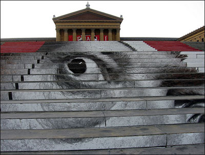 چیزی که شبیه ابزار ساده "خیره کردن" در فتوشاپ هست در حقیقت پله های موزه هنر فیلادلفیاست، که عابران رو می ترسونه.