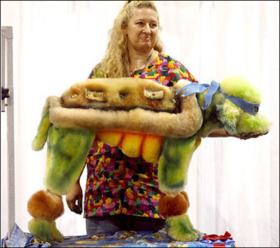 یک سگ زنده، که خانم زحمت کشیدن برای مسابقه به این روزگار درش آوردن!