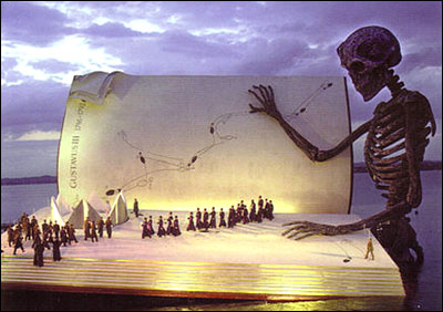 این بیشتر شبیه نقاشیه تا فتوشاپ، ولی در حقیقت تصویری از سن عظیم یک اپراست با نماد "مرگ در حال خواندن کتاب زندگی" که اون مجسمه بزرگ اسکلت واقعاً در همون اندازه کنارش ساخته شده!