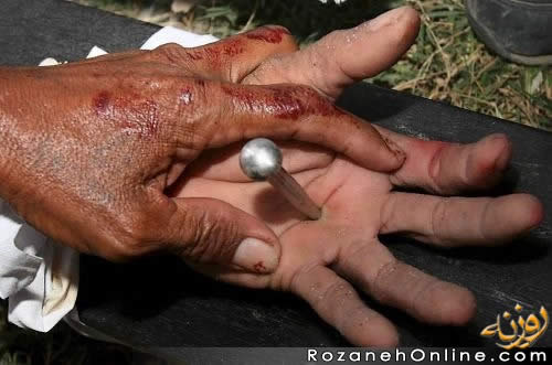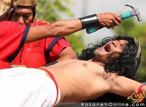 بچه ها نباید به عقاید دینی دیگران با تمسخر نگاه کنیم..همینطور که عکس شماره1و2و3 را نگاه کنید متوجه خواهید شد که باا ینکه میخ تو دستش کوبیده ولی قطره خونی از دست او بیرون نیامده. این چه معنی میده. |