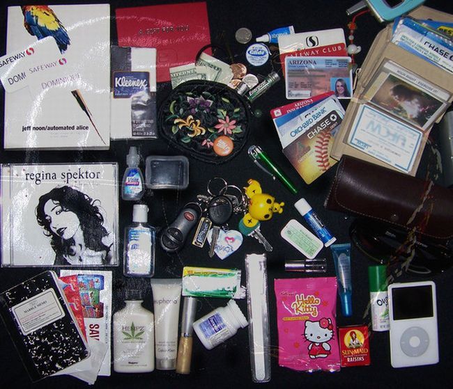 تو عکس سومی کی میتونه بگه گیره طناب رختی به چه درد خانمه میخوره؟حالا منهم با فضولی که در بعضی از دیسکوهای اینجا از کیف دختر خانمها کردم چند چیزو اضافه میکنم.بطری های کوچک مشروب که بصورت غیر قانونی بداخل دیسکو میاورند.سیگارهای بار زده و اماده ماری جوانا..... |