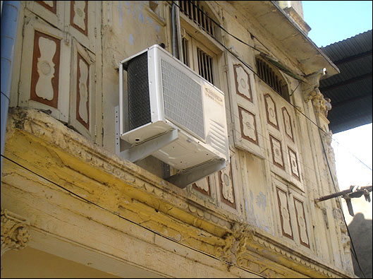 کولر گازی در ساختار چند صد ساله این پول تضاد جالبی است و البته در هوای بسیار گرم احمد آباد آرامشی که بسیاری به آن دسترسی ندارند