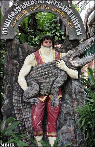 بانکوک ـ : کارکنان آموزشدیده پارک فیل سامفران در نزدیکی بانکوک بازدیدکنندگان را با نمایش تمساحها سرگرم میکنند.