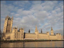 پارلمان بریتانیا در کنار رود تیمز در لندن |
