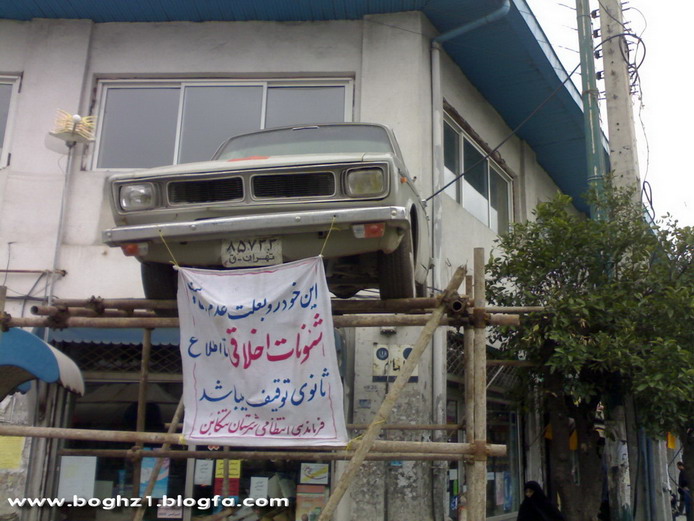 حالا داربستش محکم هست ؟؟ چه ماشین زوار در رفته ایی هم بوده , حالا با این ماشین قراضه میرفته دنبال کدوم شئونات غیر اخلاقی که گرفتنش ؟؟ از ماشینیش معلومه که صاحبش هشتش گرو نهش بوده یعنی یک کلام گور نداشته که کفن داشته باشه , اگه داشت که این اولا این ماشینش نبود و دوما اصلا گیر نمی افتاد ..