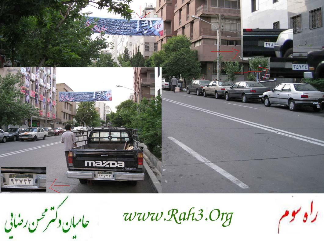 سایت ستاد "راه سوم" وابسته به حامیان محسن رضایی نوشت: در خیابان فلسطین، کوچه ای است با نام "سرپرست" که بنرهای بزرگ محمود احمدی نژاد، همه جای آن دیده می شود. ظاهراً ستاد "مردمی و خودجوش محمود احمدی نژاد" اینجاست. اما نقطه جالب و البته تاسف برانگیز ماجرا، اتوموبیل های اطراف این ستاد هستند.شاید بیش از 80 درصد ماشین های اطرف این ساختمان و ستاد مردمی و خود جوش، اتوموبیل های دولتی با پلاک های مشخص هستند! از اتوموبیل های فلان ارگان دولتی بگیرید تا پلاک های نهادهای نظامی و ....!