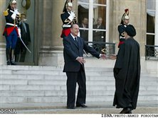 در حالیکه احمدی نژاد هفته گذشته در ادامه تکرار ادعاهای تبلیغاتی خود جهت تخریب چهره سید محمد خاتمی استقبال رئیس جمهور فرانسه از خاتمی را مایه ناراحتی خود دانست و مدعی شد که شیراک حاضر نشد از پله های کاخ پایین بیاید و این باعث سرافکندگی ایرانیان شد .
