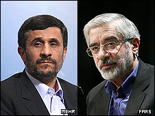 متانت موسوی واقعا حرفه ای بود - ما که از قیافه احمدی نژاد با اون لبخند های مکش مرگش حسابی داغ کردیم چه برسه به حرفاش !!! ازت متنفرم احمدی نژاد چه رای به موسوی بدم چه ندم ـ ایشالا همون رفسنجانی خفت کنه !!!! :)