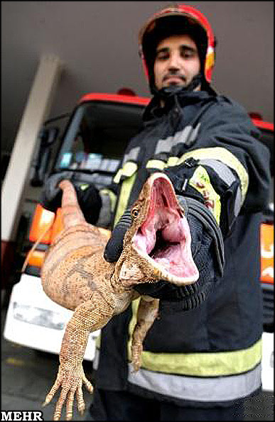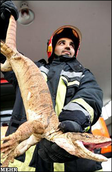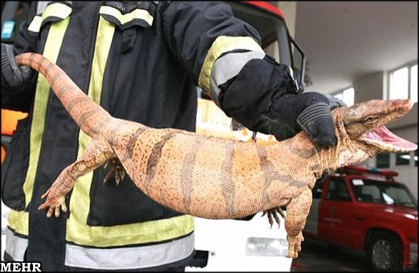آتشنشانان تهران بزمجه یک و نیم متری را که موجب ترس و وحشت ساکنان شهرک راهآهن شده بود به دام انداختند.