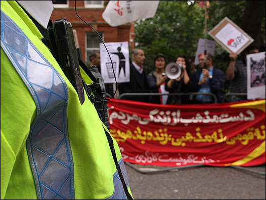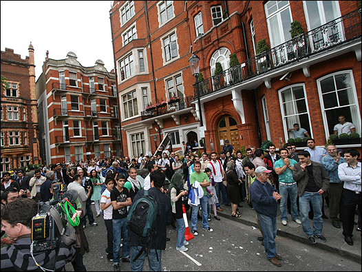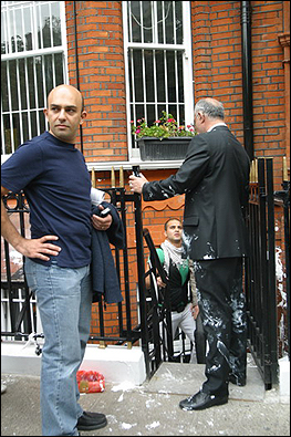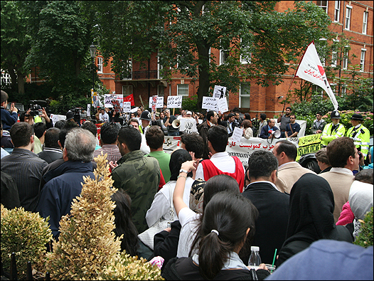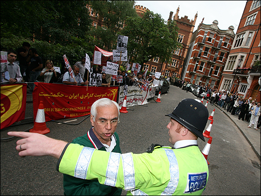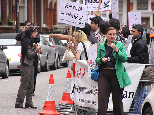 شعار امروز بود:ایران چیکارش میکنه ........سوراخ سوراخش میکنه.کمونیست حیا کن سفارتو رها کن و.... ولی بی چاره مسوول سفارتو رنگی ودهنشو ...و احمدی بائ بائ |
