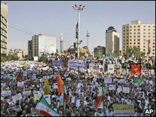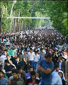 خشم از نتایج رسمی باعث شد صدها هزار نفر از هواداران آقای موسوی روز دوشنبه در تهران راهپیمایی کنند که به گفته خبرنگاران از نظر ابعاد در طول سه دهه پس از انقلاب سابقه نداشته است.