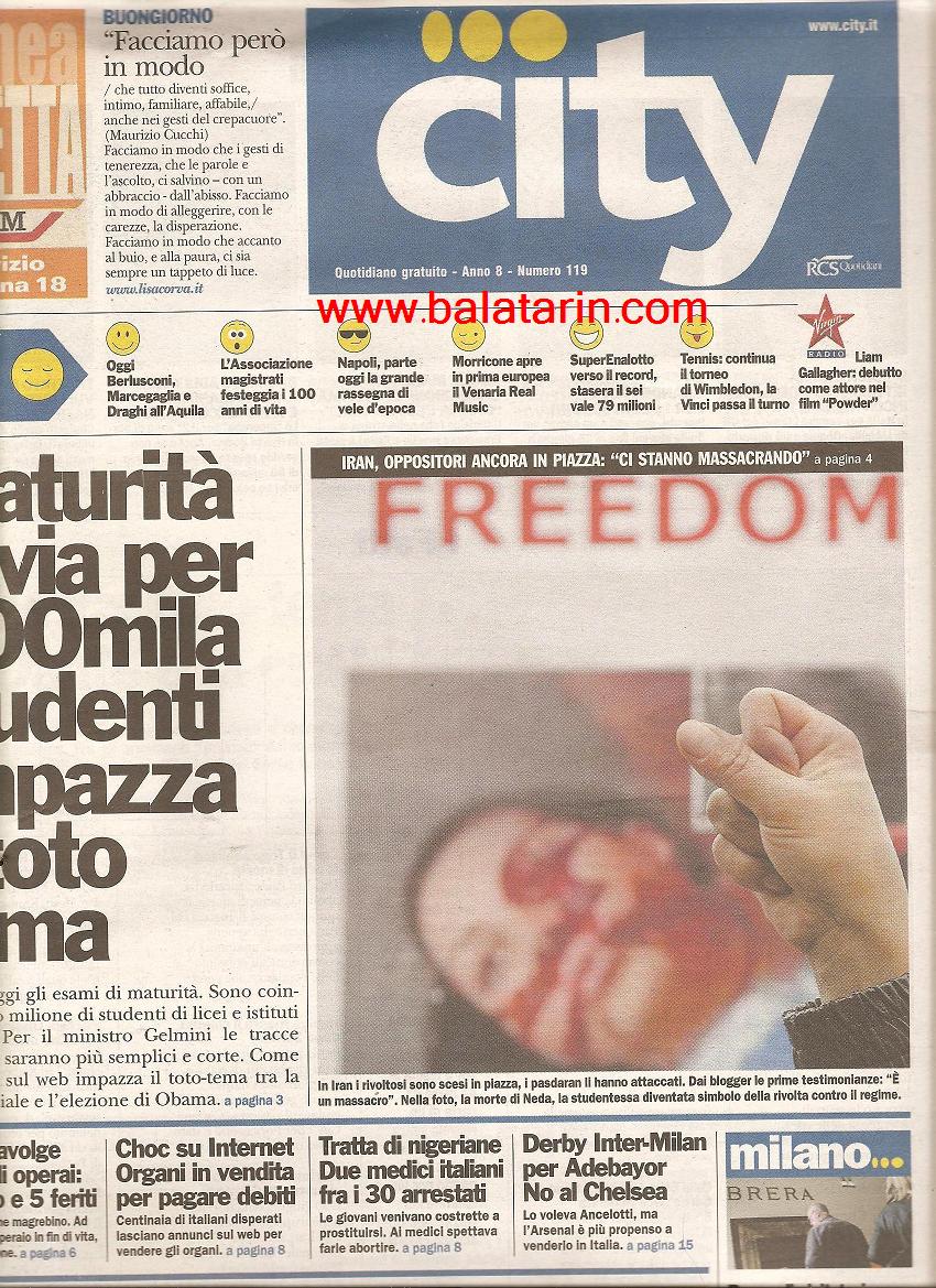 من حس میکنم این اراجیفی که در آخر قرار داده شده؛ فقط میتونه کار یه احمقی نژادی باشه.. باید خدمت اون احمق بگم که: چطور در ایران ما که احمقی نژاد با دو میلیون رای میاد بالا خودش رو نماینده ملت ایران میدونه و به خودش اجازه میده هر چرندی رو بنام ملت ایران به زبون بیاره ولی وقتی: اوباما و ریسای جمهور کشورهای توسعه یافته با مردم تحت ستم ایران ابراز همدردی می کنن ؛ این نمیتونه صدای مردمشون باشه!!؟
