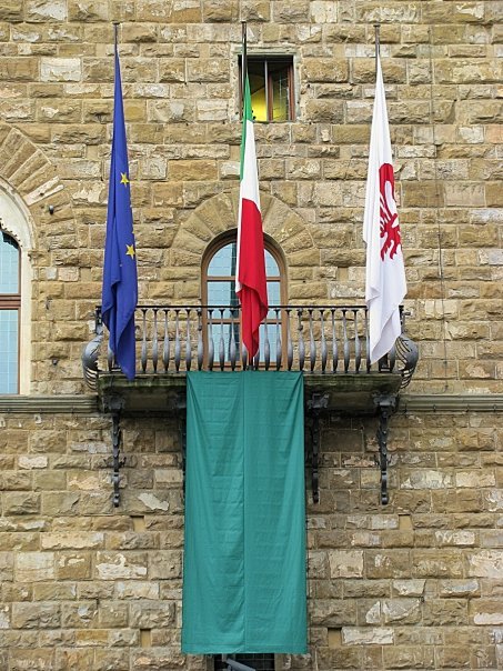 شهر فلورانس برای اعلام همبستگی و همدردی با مردم ایران پرچم سبزی رو بر سر در شهرداری آویختند