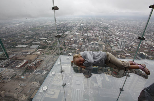 من سی ارز تاور رفتم ولی همچین بالکنی ندیدم فقط طبقه ای بود که دور تا دورش شیشه ای بود که مشرف میشد به شیکاگو لیک منظره خیلی قشنگی داشت بخصوص موقع غروب آفتاب |