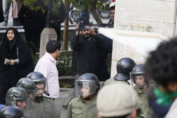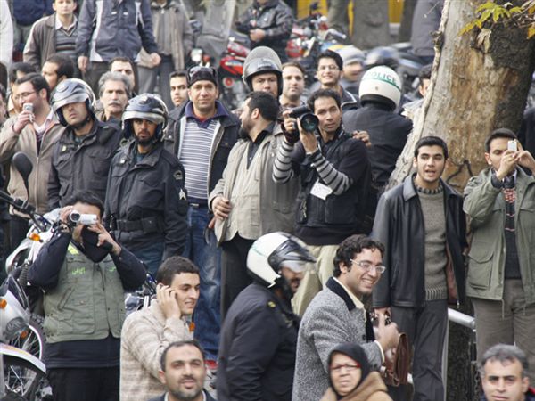 معترضان زیر نگاه دوربین عکاسان لباسشخصی و بسیجی