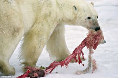 گروهی از توریستها در شمالی ترین قسمت کانادا در زمان بازدیشان از خرسهای قطبی هنگامی که مشاهده کردند یک خرس قطبی نر با حمله به یک توله خرس قطبی او را در مقابل چشمهای وحشت زده بازدید کنندگان دریده و مشغول خوردن او شد دچار وحشت عجیبی شدند.