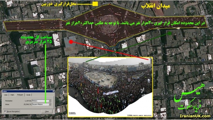 | hamed_58 - سوئد - گوتنبرگ | ali6529 - ایران - شیراز. مگر گوسفند بودن که که در هر متر مربعی 4 نفر بایستند. در ضمن نوشته مساحت کل 25000 هزار متر مربع. که این جمعیت این مساحت را پر نکردند. تا کی میخواهید چشمتان را به روی واقعیت ببندید که این ولایت فقیه و این دولت جایگاه مردمی ندارند. | یکشنبه 13 دی 1388 |