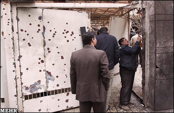 توجه کنید در عکس آخر...در بمب گذاری امروز عکسی از ابوناصر" دستیار "حسین منیف اشمر" دیده می شود . جوان عرب چهره که پلوور آبى رنگ بتن دارد .. این عضو حزب اله لبنان لحظاتی پس از ترورمسعود علیمحمدی، استاد دانشگاه حاضر شد که صحنه را از نزدیک کنترل کند. "ابوناصر" دستیار "حسین منیف اشمر" است . این دو تن از اعضای ارشد "حزب الله لبنان" در تهران هستند که در جریان سرکوب بارها و بارها دیده شدند در حالیکه اسلحه بدست داشتند یا مشغول تیراندازی بودند. گفته می شود صحنه های این انفجار بسیار شبیه به انفجارهای جنوب لبنان است. مرگ بر رژیم ظلم ودروغ اسلامى لعنت بر شما اشغالگران ایران باد. |