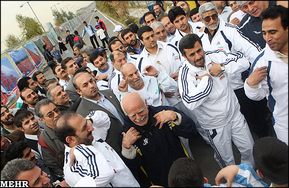 خودش بدرک.. فقط برو تو نخ محافظش . بدبختها با این روان پاک اسیر شدن. یه بار فوتبال . یه بار جودو. یه بار دوچرخه . دفعه دیگه نوبت شنا هستش .. احمدی با مایو و محافظ هاش با کت و شلوار...... |