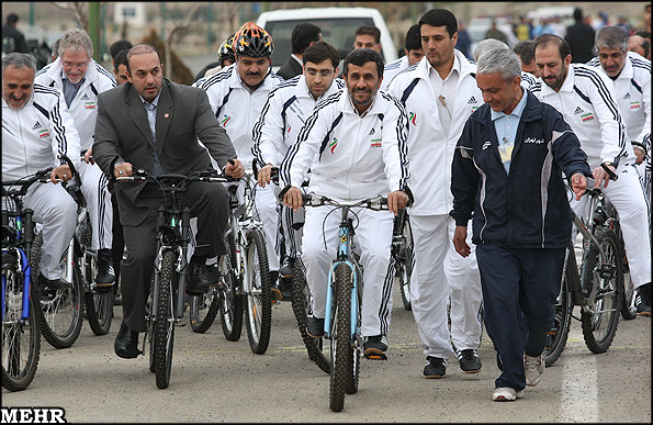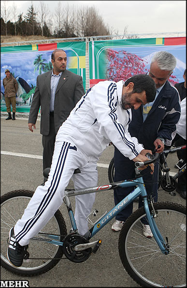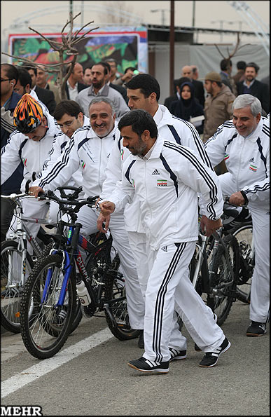 دوچرخه سواری احمدی نژاد در روز هوای پاک