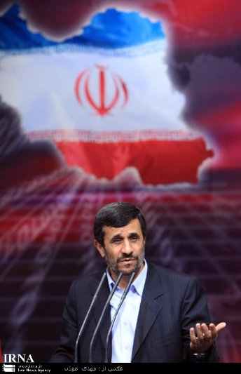 تغییر رنگ سبز پرچم ایران به رنگ آبی در حضور احمدی نژاد