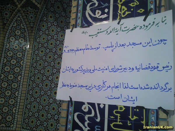 دستشان درد نکند.هر جا فتنه و دشمنی نفوذ کرد باید وارد شد و چشمه فتنه را کور کرد همچون حضرت رسول ص که دستور خراب کردن مسجد ضرار را دادن بدلیل سوع استفاده از مکان مقدس مسجد.....ای رهبر ازاده اماده ایم اماده.22 بهمن منتظرتان هستیم...دوره مدارا تمام شد. |