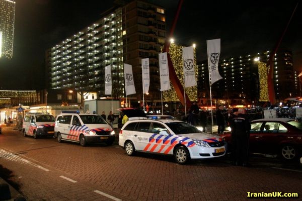 در بیرون از تالار، چهار ماشین پلیس، با سگ، همراه با دو اسب حضور داشتند. از یکی از افسران ارشد پلیس هلند پرسیدم: «مسئول چنین برخوردی با یک خبرنگار در تالار کیست؟» و او گفت: «باید به شهردار روتردام شکایت کنید.»