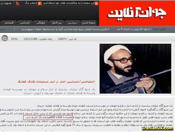 معجزه هادی غفاری:اختفای 20 کامیون سلاح زیر فرش مسجد!