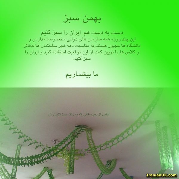 | alind - کردستان عراق - اربیل | | دستشان درد نکند امیدوارم سرتاسر ایران سبز باشد.ولى جرا ننوشتن مدرسه تزئینشده کجا است. | | شنبه 17 بهمن 1388 | |