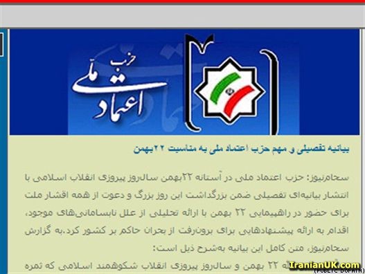 حزب اعتماد ملی در بیانیه ای به مناسبت سی یکمین سالگرد انقلاب در ۲۲ بهمن خواستار برگزاری همه پرسی برای به دست آوردن مطالبات واقعی مردم و مقولاتی مانند «نظارات استصوابی» شده است.