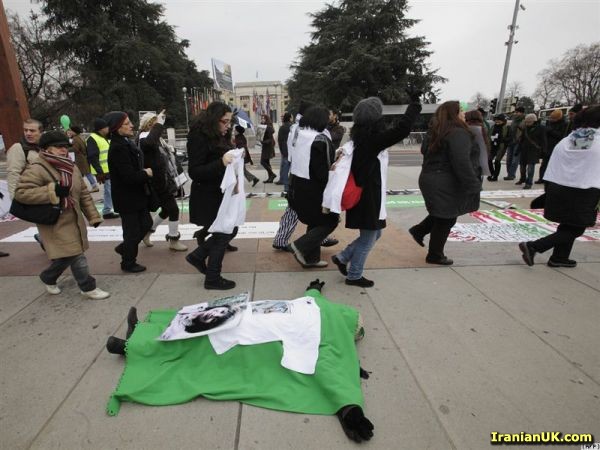 در همین حال صدها تن از معترضان ایرانی خارج از کشور که از نقاط مختلف اروپا به ژنو آمده اند با تجمع مقابل محل برگزاری نشست شورای حقوق بشر در ژنو به وضعیت حقوق بشر در ایران اعتراض کرده و موج سرکوب های پس از انتخابات را محکوم کردند.