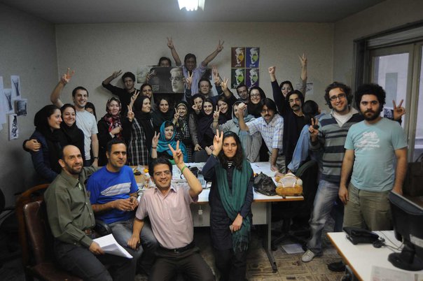 عکس دسته جمعی اعضای روزنامه اعتماد پس از توقیف با نشانه V