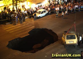 این عکس مال یک سال و نیم پیش هست که خیابان شریعتی سر یخچال همین اتفاق افتاد من اونجا بودم و عکس گرفتم اتفاقا دقیقا همین ماشین استیشن زرد بود که کنار گودال کج شده بود نکنه هرجای تهران می ریزه یه دونه از ماشین ها هم حضور داره ؟؟!!!!! |